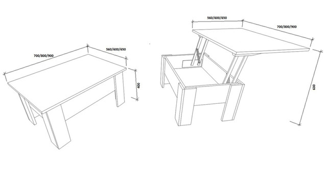Пропонуємо Вам варіант столу, який трансформується з журнального низького столика (Висота 40 см) на робочому місці, стіл під ноутбук, або обідній, кавовий столик (Висота 63 см). Для легкої і безшумною трансформації механізми обладнані пружинами. Відмінне рішення для житлових кімнат, віталень, і готель. Здивуйте гостей столом з "родзинкою".